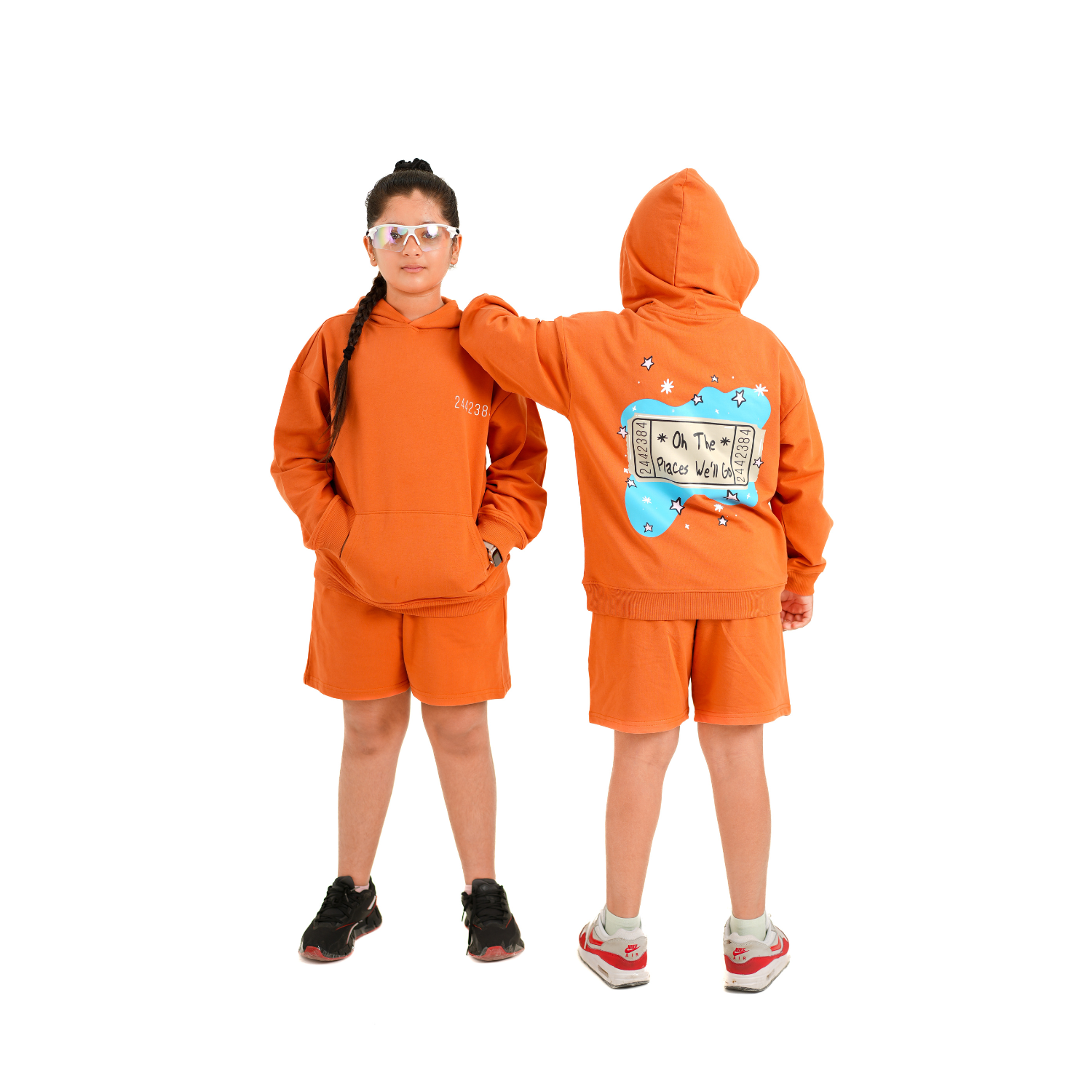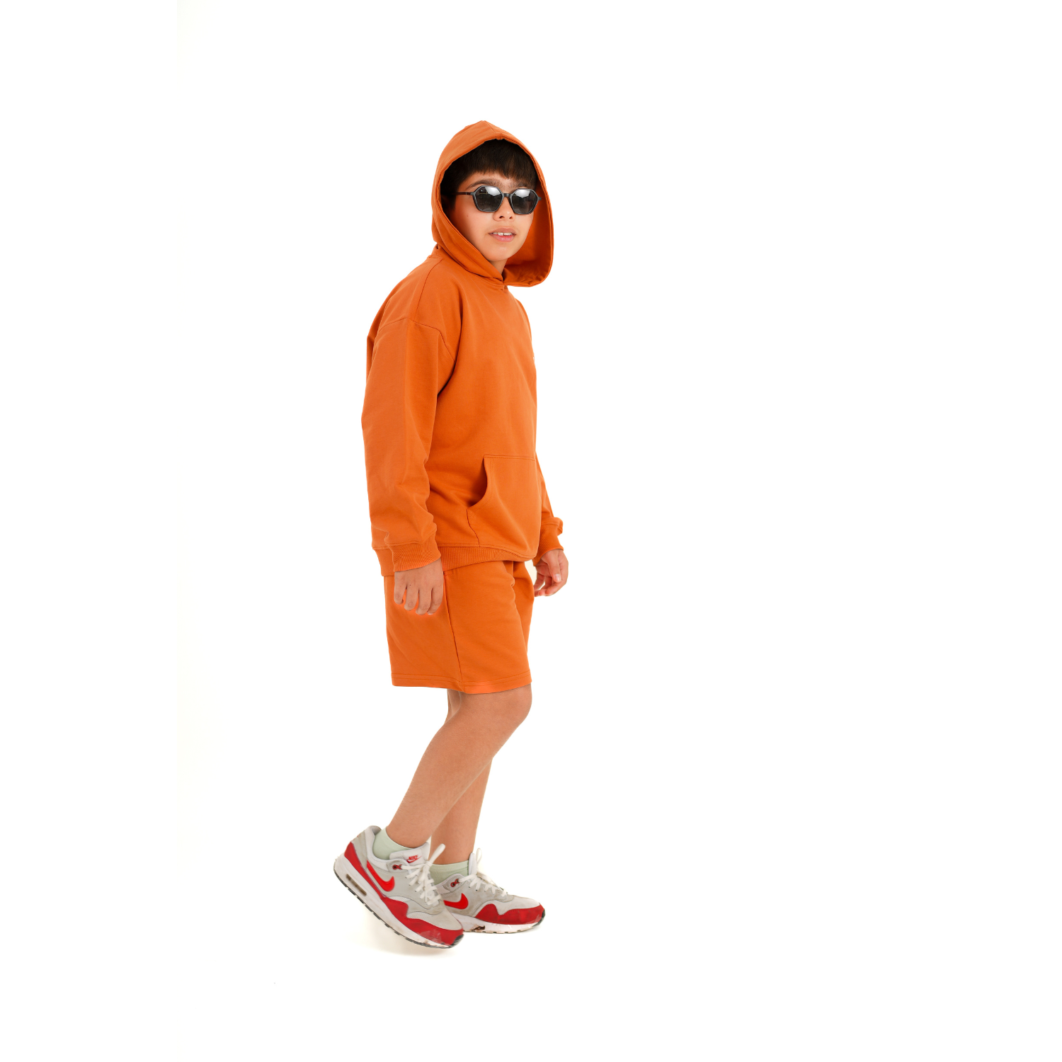 Elevate your everyday style with our vibrant orange hoodie and shorts. Made from soft, high-quality fabric, this hoodie offers a cozy fit and ultimate comfort, making it perfect for India's winter weather. The eye-catching color adds a fun and energetic touch, ensuring your child stands out in any casual setting.