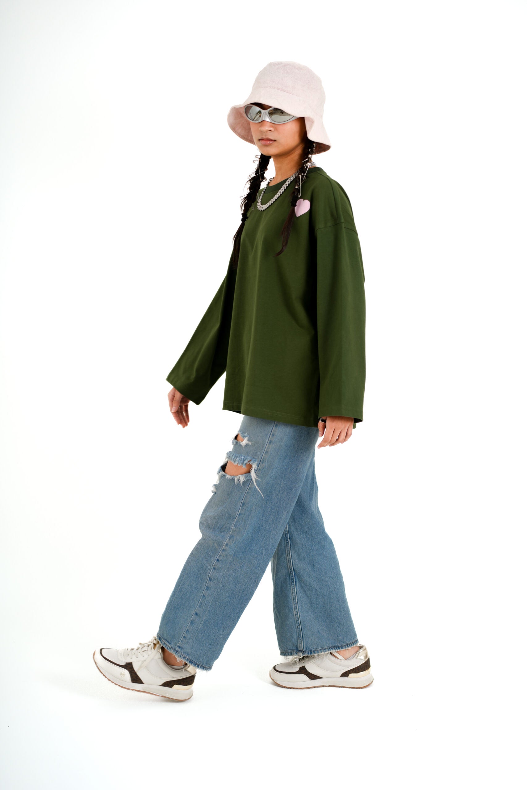 Elevate your everyday style with our dark green full sleeves t-shirt featuring a striking back graphic design. Made from soft, high-quality fabric, this t-shirt offers a comfortable fit and ultimate ease, making it perfect for any season in India. The eye-catching graphic adds a stylish touch, ensuring your child stands out in any casual setting.